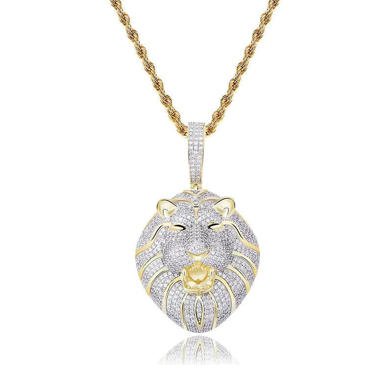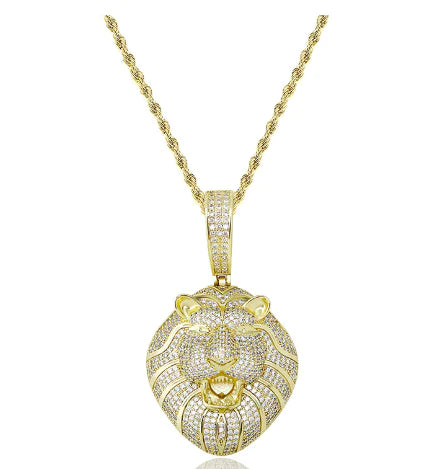 🦁 Colgante de Cabeza de León Completa con Circonita — Poder, Estilo y Lujo Urbano
