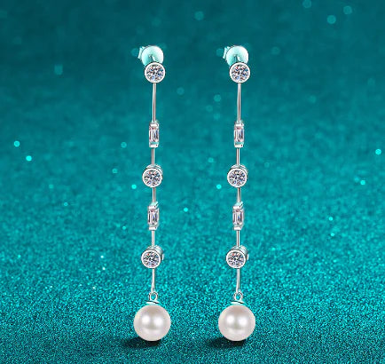 Эти длинные серьги-кисточки украсят любой наряд, от повседневного до официального, и станут незаменимым аксессуаром для любой любительницы украшений. Тщательно изготовленные серьги украшены красивым натуральным пресноводным жемчугом 1,8 карата и муассанитом, оправленными в изысканное серебро 925 пробы.